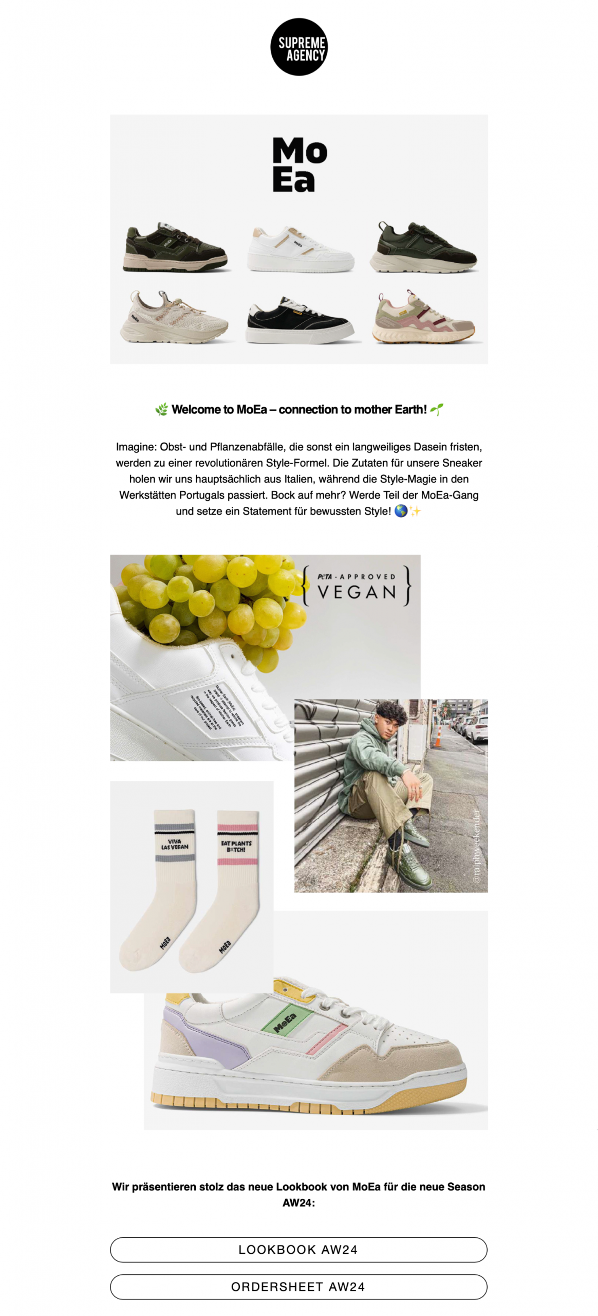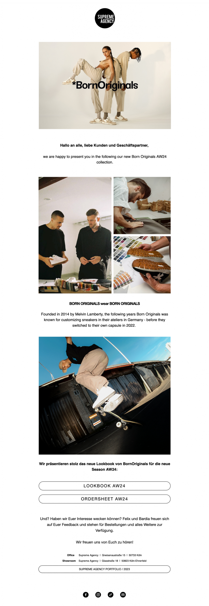 Für die Supreme Agency – eine Vertriebsagentur für nachhaltige Streetwear in Köln – habe ich eine Reihe von Newslettern erstellt.